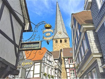 SAMSTAG • 18.04.2026 Fahrt im K&N-MiniBus ab unseren Zustiegen im Köln, Dormagen und Düsseldorf (-Süd) in das Tal der Ruhr. In Essen-Werden besuchen Sie zunächst die mächtige St. Ludgerus-Kirche, die um das Jahr 799 vom Hl. Ludgerus im Auftrag Karls des Großen gegründet wurde. Von hier aus erfolgte die Gründung des Bistums Münster; die Schreibstube des Klosters wurde weltberühmt. Wenige hundert Meter entfernt befindet sich ein Kleinod (vor-)romanischer Baukunst: die ab 995 erbaute Luciuskirche, die für den nördlichen Pfarrbezirk errichtet und 1063 geweiht wurde... Im restaurierten Inneren kann man wundervolle Entdeckungen machen! Es folgen eine individuelle Mittagspause in der Altstadt von Werden und die landschaftlich reizvolle Fahrt über die Ruhrhöhen bis in die Fachwerkaltstadt von Hattingen. Hier erwartet Sie ein geführter Rundgang zu den wunderbaren Fachwerkbauten der alten Handels- und Hansestadt, die neben der Innenstadt von Recklinghausen die einzige Innenstadt des Ruhrgebietes ist, die den 2. Weltkrieg in großen Teilen überstand... Vorbei am Hattinger Vorort Blankenstein und dem Wasserschloss Kemnade erreichen Sie auf der anderen Seite der Ruhr die im Kern ottonische Dorfkirche von Bochum-Stiepel (10. & 12. Jh.), deren pittoreskem Kirchhof und wunderbaren Fresken unser letzter Besuch gilt. Anschließend Beginn der Rückfahrt zu den Zustiegsorten.